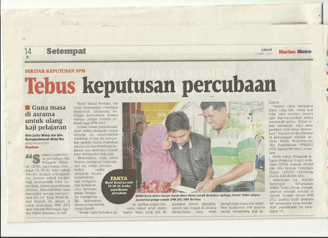 ANDDDDD! TAHNIAH dekat adik sendiri sebab dapat keputusan yang sangat cemerlang dalam SPM. 10A uolss! Masuk paper lagi. Tahniah2. Bangga mak abah. Aku pun pernah masuk paper jugak tp masa PMR jelah. Tu pun gambar ramai2 41 orang. Takde lah nak bangga sangat. Kbai.
